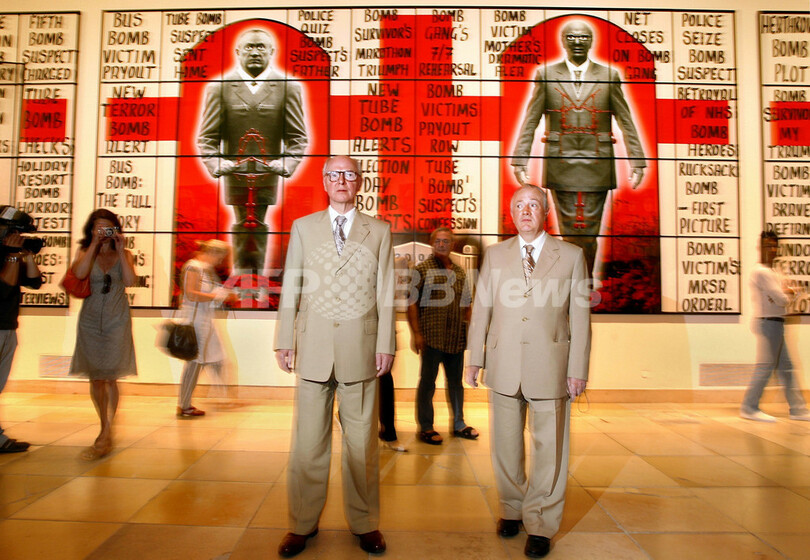 【6月22日 AFP】ドイツ・ミュンヘン(Munich)の美術館、Haus der Kunstで9月9日まで開催中の展覧会「Gilbert & George Major Exhibition」会場に10日、ギルバート・プロッシュ(Gilbert Proesch)とジョージ・パサモア(George Passmore)が姿を見せた。同展は、英・ロンドンにある美術館、テート・モダン(Tate Modern)で2月から5月にかけて行われたもので、約40年間に制作された作品を集めた回顧展となっている。(c)AFP/DDP Joerg Koch