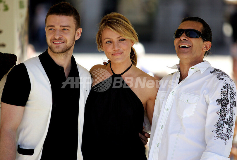 2007年6月13日、マドリードで行われた映画『シュレック3(%%Shrek The Third%%)』のフォトコールに参加する(左から)歌手のジャスティン・ティンバーレイク(%%Justin Timberlake%%)、キャメロン・ディアス、俳優のアントニオ・バンデラス(%%Antonio Banderas%%)。(c)AFP/Bru GARCIA