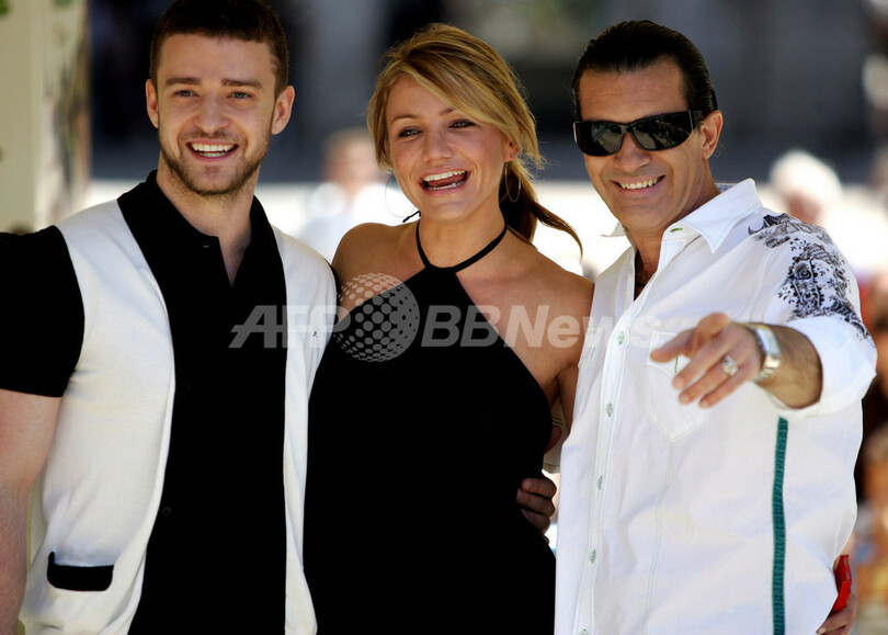 2007年6月13日、マドリードで行われた映画『シュレック3(%%Shrek The Third%%)』のフォトコールに参加する(左から)歌手のジャスティン・ティンバーレイク(%%Justin Timberlake%%)キャメロン・ディアス(%%Justin Timberlake%%)、俳優のアントニオ・バンデラス(%%Antonio Banderas%%)。(c)AFP/Bru GARCIA