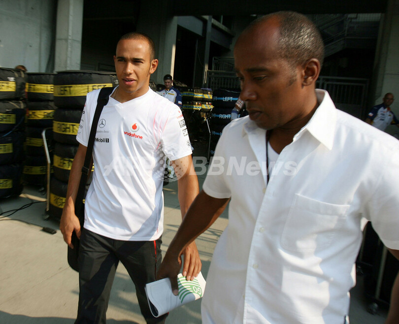 【6月17日 AFP】F1第7戦・米国GP(United States Grand Prix 2007)、決勝。予選でポールポジションを獲得し、2戦連続のポール・トゥ・ウィンでキャリア2勝目を目指すマクラーレン・メルセデス(McLaren-Mercedes)のルイス・ハミルトン(Lewis Hamilton)が、レース開始を控えインディアナポリス・モーター・スピードウェイ(Indianapolis Motor Speedway)に到着した。(c)AFP