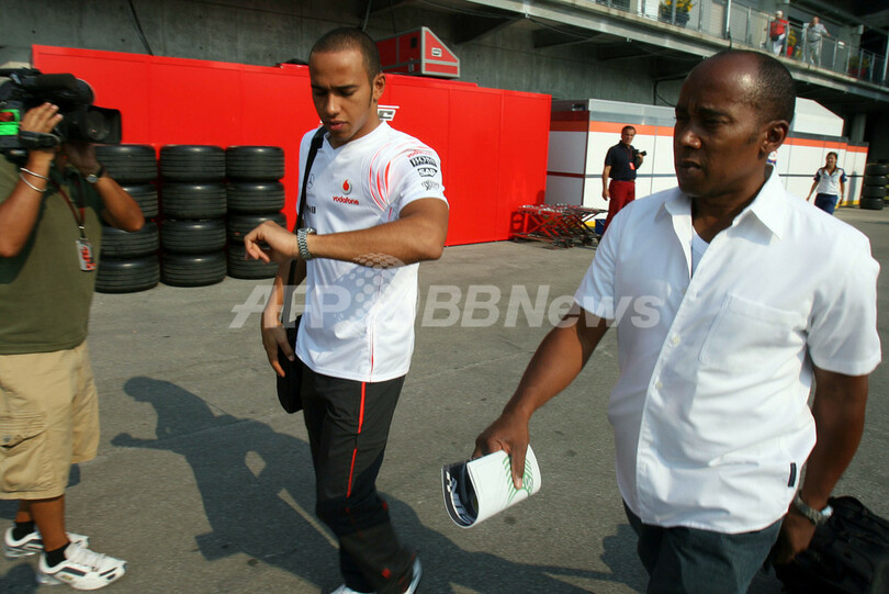 【6月17日 AFP】F1第7戦・米国GP(United States Grand Prix 2007)、決勝。予選でポールポジションを獲得し、2戦連続のポール・トゥ・ウィンでキャリア2勝目を目指すマクラーレン・メルセデス(McLaren-Mercedes)のルイス・ハミルトン(Lewis Hamilton)が、レース開始を控えインディアナポリス・モーター・スピードウェイ(Indianapolis Motor Speedway)に到着した。(c)AFP
