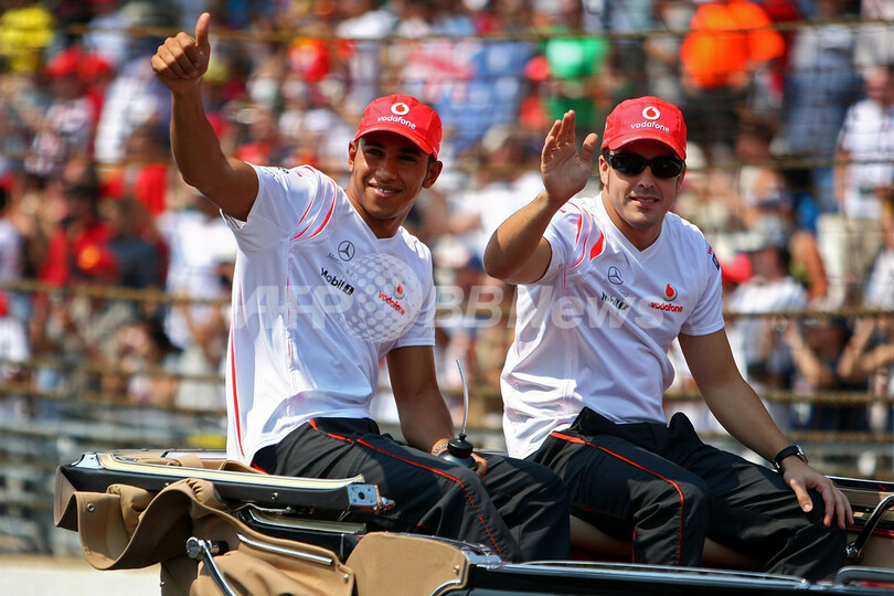 スポーツ モータースポーツ 米国GP決勝を控えドライバーズパレードが開催される 2007年6月18日 1:42 発信地:インディアナポリス/米国 [ 北米 米国 ] このニュースをシェア ‹ › ❮ 1/10 ❯ 歓声に応えるマクラーレン・メルセデス(%%McLaren-Mercedes%%)のルイス・ハミルトン(%%Lewis Hamilton%%、左)とフェルナンド・アロンソ(%%Fernando Alonso%%)。(c)AFP/Getty Images Clive Mason 画像作成中 ! 【6月18日 AFP】F1第7戦・米国GP(United States Grand Prix 2007)。決勝のスタートを前に会場のインディアナポリス・モーター・スピードウェイ(Indianapolis Motor Speedway)ではドライバーズパレードが開催され、レースを控える各ドライバーが会場を一周した。(c)AFP/Getty Images モータースポーツ 一覧へ> メディア・報道関係・法人の方向け 写真・動画 購入のお問合せ>
