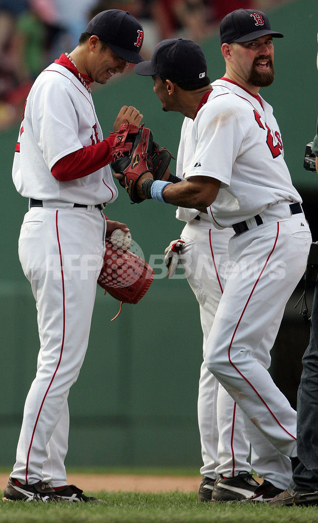 スポーツ 野球 レッドソックス ジャイアンツ降し3連勝 2007年6月18日 11:03 発信地:ボストン/米国 [ 北米 米国 ] このニュースをシェア ‹ › ❮ 15/17 ❯ 試合後にウイリー・モー・ペーニャ(%%Wily Mo Pena%%、右)と喜びを分かち合うレッドソックスの岡島秀樹(%%Hideki Okajima%%)。(c)AFP/Getty Images Elsa 画像作成中 ! 【6月18日 AFP】07MLB、ボストン・レッドソックス(Boston Red Sox)vsサンフランシスコ・ジャイアンツ(San Francisco Giants)。試合はレッドソックスが9-5でジャイアンツを降し3連勝を飾った。(c)AFP/Getty Images 野球 一覧へ> メディア・報道関係・法人の方向け 写真・動画 購入のお問合せ>