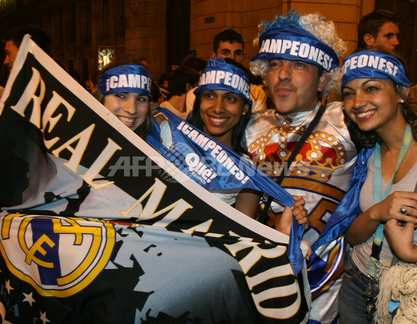レアル・マドリードの選手たちは優勝決定の2時間後にサポーターが集まり、花火が打ち上がるシベレス広場にチームのジャージを着て到着した。かつてレアル・マドリードが優勝パレードを行った際にシベレス広場の象を破損した前例からマドリード市は象の上までいける選手の人数を制限し、今回は主将のラウル・ゴンザレス(Raul Gonzalez)一人が象に近づきスカーフを巻く事を許可された。他の選手たちはバスの上に残ったままでいた。(c)AFP