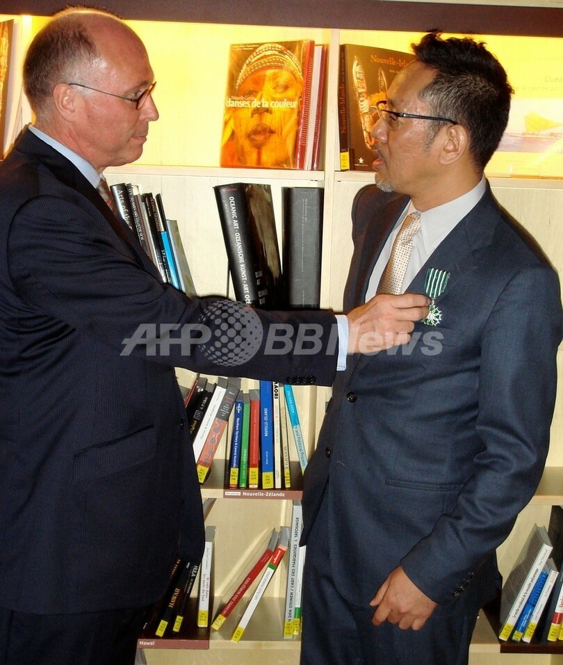 【パリ 18日 AFPBB News】イッセイ ミヤケ(Issey Miyake)の前デザイナー滝沢直己(Naoki Takizawa)が6月15日、パリ市内でフランス芸術文化勲章シュバリエを授与された。授章式は昨年オープンしたケ・ブランリー美術館内のサロンで行なわれ、滝沢のこれまでの活動にかかわってきた各界の著名人が祝福した。 授章は滝沢のこれまでのファッションと芸術への長年の貢献を評価したものだが、ケ・ブランリー美術館のカーテンを滝沢がデザインしたことも大きな契機となった。 勲章を手渡した同美術館のステファン・マルタン(Stephane Martin)館長は「滝沢氏はファッションデザイナーであり、すばらしい芸術家であります。長年のデザイナー活動、そしてケ・ブランリー美術館(Musee du Quai Branly)のカーテン・プロジェクトでは、滝沢氏が伝統的な職人技術と洗練されたテクノロジーを融合した驚くべき仕事を成し遂げました」と賞賛した。 滝沢は「カーテン制作を依頼してくれた建築家のジャン・ヌーベル(Jean Nouvel)氏、今回携わったフランスの職人たち、そして日本のイッセイ ミヤケチーム全員に感謝します。師である三宅一生氏との出会いなくしては、今日の日はありません。デザインは“チームワークの結果”だと教わりました」とあいさつした。 「今ここに携わったチームの代表として奇跡の現実を受け止め、ここに立てることを感謝します」 カーテン制作は、滝沢にとって初めてのフランス国内生産のプロジェクト。染色から縫製まで全てを各地域の職人達と一緒に進めた。「物作りのシステムの違いを学びました。難しさも感じたが、出来上は涙が出るほど素晴らしかった。今後は日本人のソフトを使い、外国の異なるハードで物を作る試みを続けて行きたい」と語った。 滝沢は今年から自身のブランド「ナオキタキザワ(Naoki Takizawa)」を立ち上げ、08年春夏コレクションから新作をスタートさせる。会場には今後コラボレーション予定の靴デザイナー、ロベール・クレジュリー(Robert Clergerie)やメイクアップアーティストのステファン・マレーも駆けつけ、激励の意を伝えた。(c)AFPBB News 【関連記事】滝沢直己、08年春夏ニューヨーク・コレクションで新ブランド「NAOKI TAKIZAWA」発表