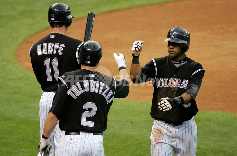 スポーツ 野球 ロッキーズ ヤンキースを降す 2007年6月20日 18:25 発信地:コロラド/米国 [ 北米 米国 ] このニュースをシェア ‹ › ❮ 5/11 ❯ 3回に同点のホームを踏み、トロイ・トゥロウスキィ(%%Troy Tulowitzki%%、中央)と拳を合わせるロッキーズのウィリー・タベラズ(%%Willy Taveras%%、右)。(c)AFP/Getty Images Doug Pensinger 画像作成中 ! 【6月20日 AFP】07MLB、コロラド・ロッキーズ(Colorado Rockies)vsニューヨーク・ヤンキース(New York Yankees)。試合は、ロッキーズが3-1でヤンキースに勝利した。(c)AFP/Getty Images 野球 一覧へ> メディア・報道関係・法人の方向け 写真・動画 購入のお問合せ>