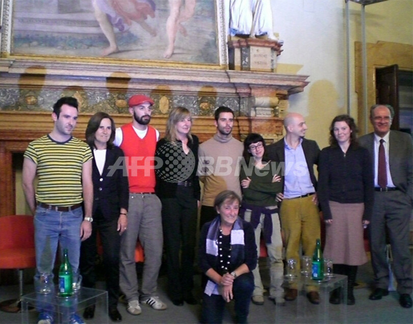 写真は、「第6回フルラ・フォー・アート(FURLA for ART)」優勝者のLuca Trevisani(右)とフルラ・イタリア本社のジョヴァンナ・フルラネットCEO。(c)AFPBB News/フルラジャパン株式会社