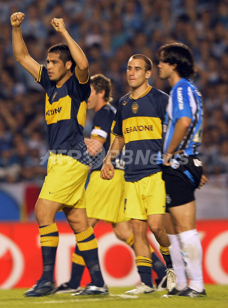 【6月21日 AFP】サッカー、リベルタドーレス杯南米選手権2007(Copa Libertadores de America 2007)・決勝、グレミオ(Gremio、ブラジル)vsボカ・ジュニアーズ(Boca Juniors、アルゼンチン)、第2戦。試合はボカ・ジュニアーズが2-0で勝利を収め、2試合合計スコアを5-0として4年ぶり通算6度目の優勝を果たし、12月で日本で開催される07クラブW杯(Club World Cup 2007)への出場を決めた。(c)AFP