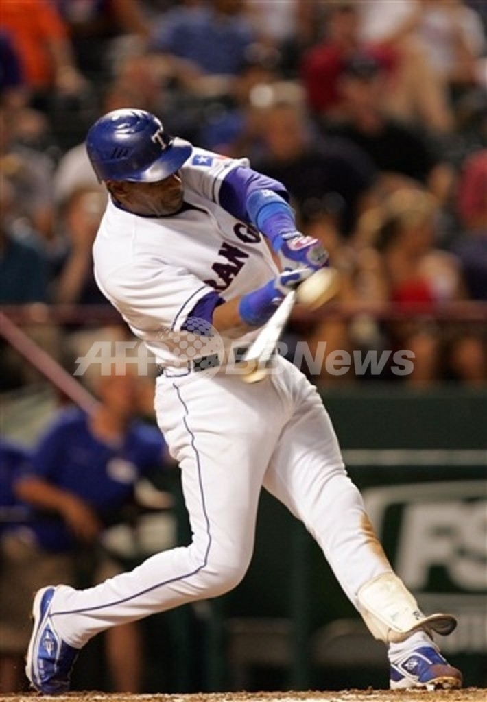 【6月21日 AFP】07MLB、テキサス・レンジャーズ(Texas Rangers)vsシカゴ・カブス(Chicago Cubs)。テキサス・レンジャーズのサミー・ソーサ(Sammy Sosa)は、5回裏にシーズン12本目となるソロ本塁打を放ち、メジャー史上5人目となる通算600号本塁打を記録した。