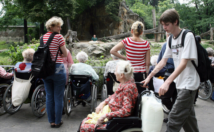 (Berlin zoo)の人気シロクマ「クヌート(Knut)」の見学にやって来た人々。(c)AFP/BARBARA SAX
