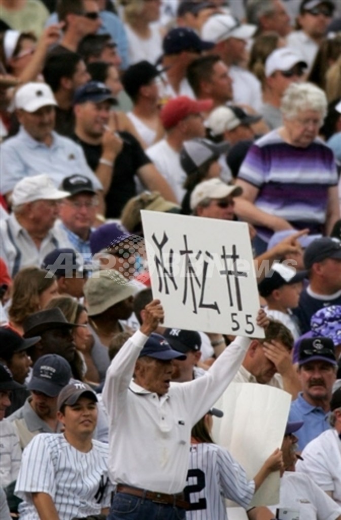 スポーツ 野球 松井秀喜 第8号先制2ランを放ち1安打2打点 2007年6月22日 12:30 発信地:コロラド/米国 [ 北米 米国 ] このニュースをシェア ‹ › ❮ 2/2 ❯ 「松井」と書かれたプラカードを掲げるヤンキースファン。(c)AFP/Getty Images Doug Pensinger 画像作成中 ! 【6月22日 AFP】07MLB、コロラド・ロッキーズ(Colorado Rockies)vsニューヨーク・ヤンキース(New York Yankees)。6番左翼で先発出場した松井秀喜(Hideki Matsui)は、2回に第8号先制2ランホームランを放つなど、この試合1安打2打点を記録した。試合はヤンキースが3-4でロッキーズに敗れ、3連敗を喫した。(c)AFP/Getty Images Doug Pensinger 野球 一覧へ> メディア・報道関係・法人の方向け 写真・動画 購入のお問合せ>