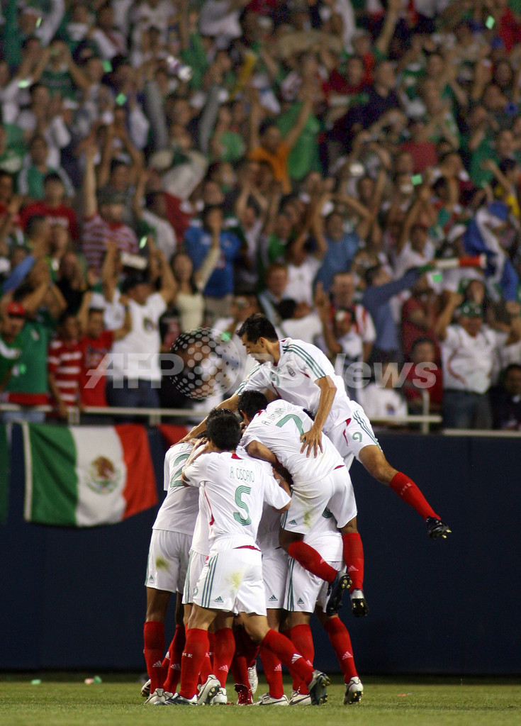 スポーツ サッカー メキシコ グアドループを降しゴールドカップ決勝へ 2007年6月22日 16:29 発信地:シカゴ/米国 [ 北米 米国 ] このニュースをシェア ‹ › ❮ 1/7 ❯ 後半25分にパベル・パルド(%%Pavel Pardo%%)の挙げた得点を喜ぶメキシコの選手たち。(c)AFP/Tasos KATOPODIS 画像作成中 ! 【6月22日 AFP】サッカー、北中米カリブ海サッカー連盟・ゴールドカップ(CONCACAF Gold Cup)、準決勝。メキシコvsグアドループ。試合はメキシコが1-0でグアドループを降し、決勝進出を決めた。(c)AFP サッカー 一覧へ> メディア・報道関係・法人の方向け 写真・動画 購入のお問合せ>