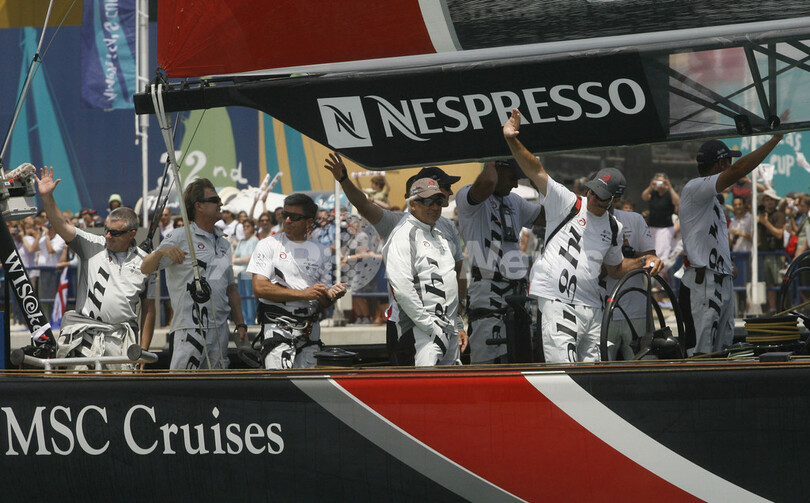 【6月24日 AFP】ヨットレース、第32回アメリカス・カップ(32nd America’s Cup)、初日。アリンギ(Alinghi、スイス)は、エミレーツ・チーム・ニュージーランド(Emirates Team New Zealand、ニュージーランド)と対戦。レースは1時間26分49秒を記録したアリンギが、1時間27分24秒を記録したエミレーツ・チーム・ニュージーランドに35秒差で勝利し、初戦を白星で飾った。(c)AFP