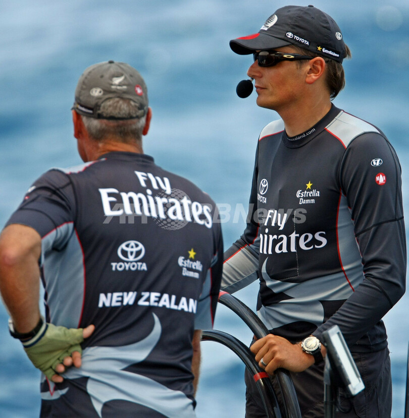 【6月24日 AFP】ヨットレース、第32回アメリカス・カップ(32nd America’s Cup)、初日。アリンギ(Alinghi、スイス)は、エミレーツ・チーム・ニュージーランド(Emirates Team New Zealand、ニュージーランド)と対戦。レースは1時間26分49秒を記録したアリンギが、1時間27分24秒を記録したエミレーツ・チーム・ニュージーランドに35秒差で勝利し、初戦を白星で飾った。(c)AFP
