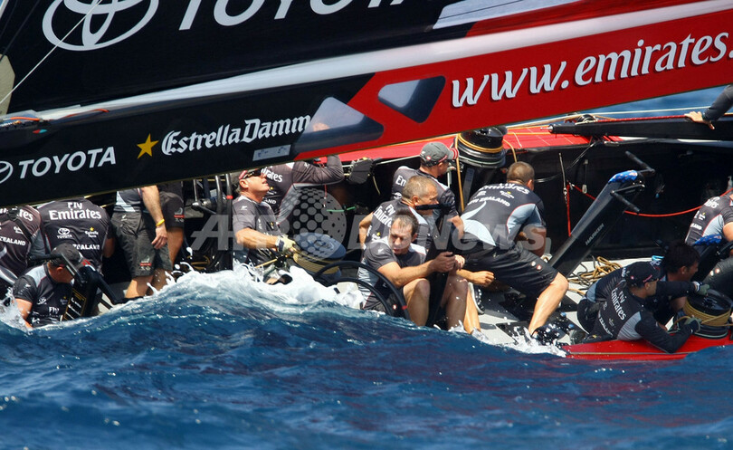 【6月24日 AFP】ヨットレース、第32回アメリカス・カップ(32nd America’s Cup)、初日。アリンギ(Alinghi、スイス)は、エミレーツ・チーム・ニュージーランド(Emirates Team New Zealand、ニュージーランド)と対戦。レースは1時間26分49秒を記録したアリンギが、1時間27分24秒を記録したエミレーツ・チーム・ニュージーランドに35秒差で勝利し、初戦を白星で飾った。(c)AFP