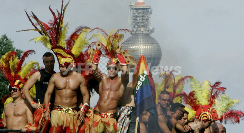【6月24日 AFP】ベルリン(Berlin)で23日、同性愛者の権利を求めるゲイパレードが開催、ゲイやレズビアンら40万人が集まり、同性愛者に対する職場や学校での差別を訴えた。
