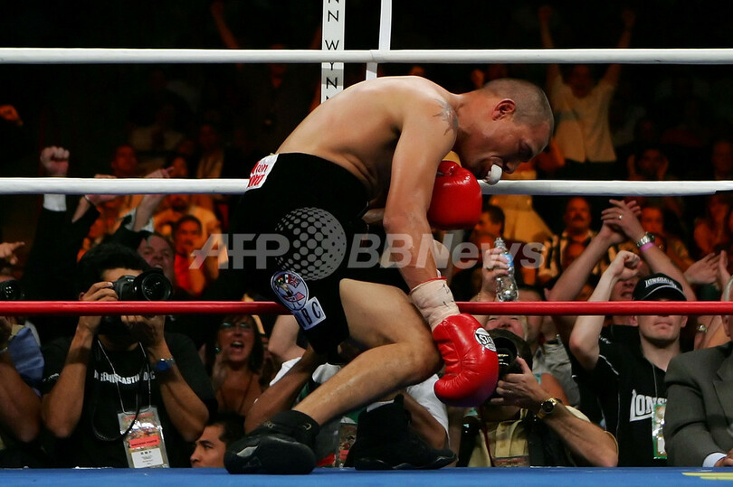 スポーツ スポーツ その他 リッキー・ハットン カスチィーヨをKOで降す 2007年6月24日 15:53 発信地:ラスベガス/米国 [ 北米 米国 ] このニュースをシェア ‹ › ❮ 2/15 ❯ ロープに倒れ込むカスティーヨ。(c)AFP/Getty Images Ethan Miller 画像作成中 ! 【6月23日 AFP】ボクシング、IBO世界ライト・ウェルター級タイトルマッチ。王者リッキー・ハットン(Ricky Hatton、英国)は、挑戦者ホセ・ルイス・カスティーヨ(Jose Luis Castillo、メキシコ)と対戦。ハットンは第4ラウンドに強烈な左フックをカスティーヨのボディーに見舞い、4ラウンドKOで初防衛を達成した。ハットンはこの勝利より無敗記録を43(31KO)に伸ばした。(c)AFP スポーツ その他 一覧へ> メディア・報道関係・法人の方向け 写真・動画 購入のお問合せ>