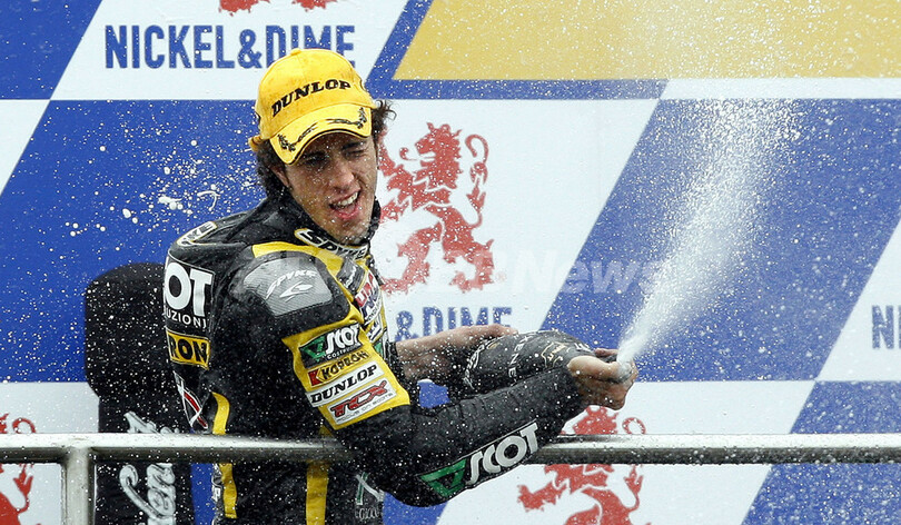 【6月24日 AFP】世界ロードレース選手権(WGP)・第8戦イギリスGP・250ccクラス、決勝。コプロン・チーム・スコット(Kopron Team Scot)のアンドレア・ドビツィオーゾ(Andrea Dovizioso)は、48分40秒173をマークし今季初優勝を飾った。