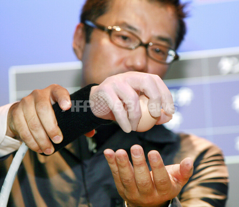 ニュース 環境・科学 動く義手、「ロボットハンド」の技能を披露 2007年6月26日 22:06 発信地:東京 [ アジア・オセアニア 東京 ] このニュースをシェア ‹ › ❮ 1/5 ❯ 2007年6月26日、ロボット企業「スキューズ」東京事業所で行われたデモンストレーションで、生卵をつかんで見せる能動義手「ロボット・ハンド」。(c)AFP/Yoshikazu TSUNO 画像作成中 ! 【6月26日 AFP】ロボットベンチャー企業スキューズは26日、同社東京事業所で、同社が研究開発した人間の手と酷似した能動義手「ロボット・ハンド」のデモンストレーションを行った。人工繊維やゴムなどを材料に用いた人工筋肉、空気圧アクチュエータにより、指の関節を曲げ伸ばししたり、動作を制御することができる。(c)AFP 環境・科学 一覧へ> メディア・報道関係・法人の方向け 写真・動画 購入のお問合せ>