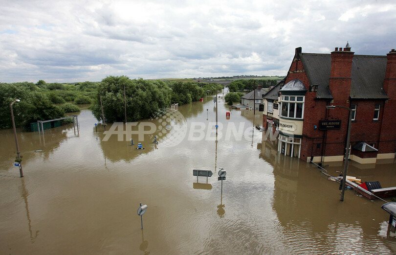 シェフィールド(Sheffield)では、英国空軍がヘリコプターで市民の救助にあたったが、14歳の少年が増水した川にのまれ死亡、68歳の男性も水のあふれた道を渡ろうとして死亡した。また、同国東海岸のハル(Hull)では、氾濫した路上で排水溝にはまった男性が溺死している。(c)AFP/Anca Teodorescu