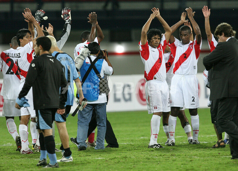 スポーツ サッカー ペルー ウルグアイに快勝し白星スタート 2007年6月27日 14:11 発信地:メリダ/ベネズエラ [ 中南米 ベネズエラ ] このニュースをシェア ‹ › ❮ 7/9 ❯ 試合後にサポーターの歓声に感謝を表すペルーの選手。(c)AFP/JAIME RAZURI 画像作成中 ! 【6月27日 AFP】サッカー、コパ・アメリカ2007(Copa America 2007)・グループA、ウルグアイvsペルー。試合はペルーが3-0で快勝し、初戦を白星で飾った。(c)AFP サッカー 一覧へ> メディア・報道関係・法人の方向け 写真・動画 購入のお問合せ>