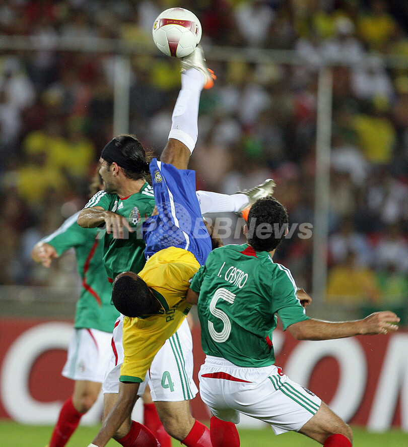 スポーツ サッカー メキシコ ブラジルを下し初戦を白星で飾る 2007年6月28日 13:34 発信地:プエルト・オルダス/ベネズエラ [ 中南米 ベネズエラ ] このニュースをシェア ‹ › ❮ 4/18 ❯ メキシコの選手に囲まれつつもオーバーヘッドシュートを放つブラジルのロビーニョ(%%Robinho%%、中央)。(c)AFP/LUIS ACOSTA 画像作成中 ! 【6月28日 AFP】サッカー、コパ・アメリカ2007(Copa America 2007)・グループB、ブラジルvsメキシコ。試合はメキシコが2-0でブラジルを下し、初戦を白星で飾った。(c)AFP サッカー 一覧へ> メディア・報道関係・法人の方向け 写真・動画 購入のお問合せ>