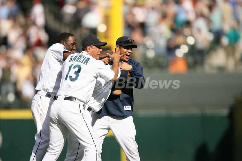 スポーツ 野球 マリナーズ 延長11回サヨナラでレッドソックスを降し5連勝 2007年6月28日 14:05 発信地:シアトル/米国 [ 北米 米国 ] このニュースをシェア ‹ › ❮ 3/5 ❯ 延長11回にサヨナラヒットを放ち(左から)ユニエスキー・ベタンコート(%%Yuniesky Betancourt%%)、カルロス・ガルシア(%%Carlos Garcia%%)三塁コーチ、フェリックス・ヘルナンデス(%%Felix Hernandez%%)から祝福を受けるマリナーズのホセ・ロペス(%%Jose Lopez%%、中央奥)。(c)AFP/Getty Images Otto Greule Jr 画像作成中 ! 【6月28日 AFP】07MLB、シアトル・マリナーズ(Seattle Mariners)vsボストン・レッドソックス(Boston Red Sox)。試合はマリナーズが延長11回2-1でサヨナラ勝ちを収め、5連勝を飾った。(c)AFP 野球 一覧へ> メディア・報道関係・法人の方向け 写真・動画 購入のお問合せ>