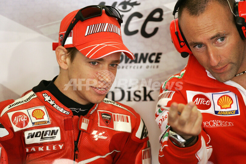 【6月29日 AFP】世界ロードレース選手権(WGP)・第9戦・オランダGP・MotoGPクラス、フリー走行1回目。ドゥカティ・マールボロ(Ducati Marlboro)のケーシー・ストーナー(Casey Stoner)は、23周を走行してベストラップ1分38秒323のトップタイムを叩き出した。
