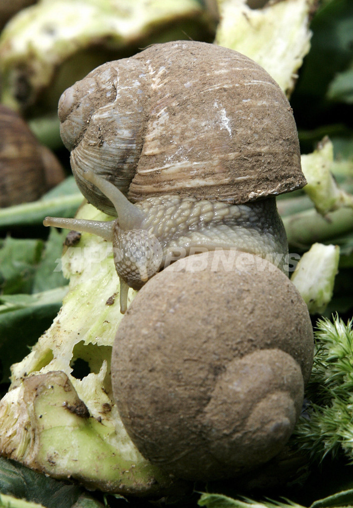 ニュース ライフ こぼれ話 最高級エスカルゴの養殖 2007年6月29日 11:56 発信地:Gruenstadt-Asselheim/ドイツ [ ヨーロッパ ドイツ ] このニュースをシェア ‹ › ❮ 8/29 ❯ 2007年6月26日、ドイツ南西部Gruenstadt-AsselheimのPfalzschneckeエスカルゴ養殖場で養殖されているエスカルゴ。(c)AFP/DDP/TORSTEN SILZ 画像作成中 ! 【6月29日 AFP】ドイツ南西部Gruenstadt-AsselheimにあるPfalzschneckeエスカルゴ養殖場では、最高級の「ポマティア(helix pomatia、ブルゴーニュ種エスカルゴ)」が養殖されている。大きいものは体長10センチ、重さ約30グラムにまで成長するが、たいていは高級レストランの鍋の中で一生を終えることになっている。(c)AFP ライフ 一覧へ> メディア・報道関係・法人の方向け 写真・動画 購入のお問合せ>
