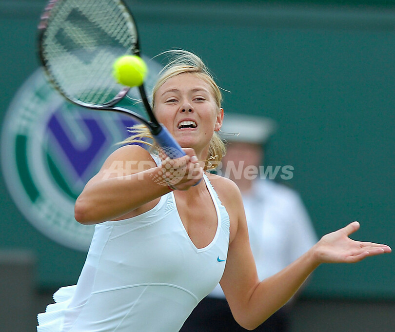【6月29日 AFP】テニス、ウィンブルドン選手権2007(The Championships Wimbledon 2007)、女子シングルス2回戦。大会第2シードのマリア・シャラポワ(Maria Sharapova、ロシア)は、フランスのセベリーヌ・ブレモン(Severine Bremond)と対戦。シャラポワはセットカウント2-0(6-0、6-3)のストレートでブレモンを降し、3回戦進出を決めた。(c)AFP/GLENN CAMPBELL