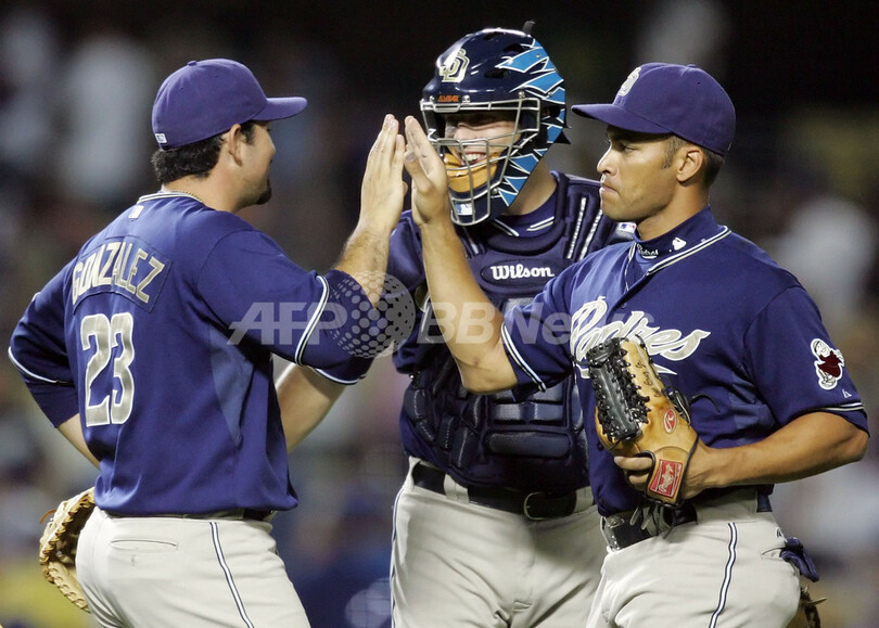 スポーツ 野球 パドレス ドジャースを降して4連勝を飾る 2007年7月1日 18:20 発信地:ロサンゼルス/米国 [ 北米 米国 ] このニュースをシェア ‹ › ❮ 1/7 ❯ 勝利を決めてハイタッチを交わすパドレスの(左から)エイドリアン・ゴンザレス(%%Adrian Gonzalez%%)、ジョシュ・バード(%%Josh Bard%%)、ホゼ・クルーズ・ジュニア(%%Jose Cruz Jr%%)。(c)AFP/Getty Images Lisa Blumenfeld 画像作成中 ! 【7月1日 AFP】07MLB、ロサンゼルス・ドジャース(Los Angeles Dodgers)vsサンディエゴ・パドレス(San Diego Padres)。試合は12回の延長の末3-1でパドレスが勝利し、4連勝を飾った。(c)AFP/Getty Images 野球 一覧へ> メディア・報道関係・法人の方向け 写真・動画 購入のお問合せ>