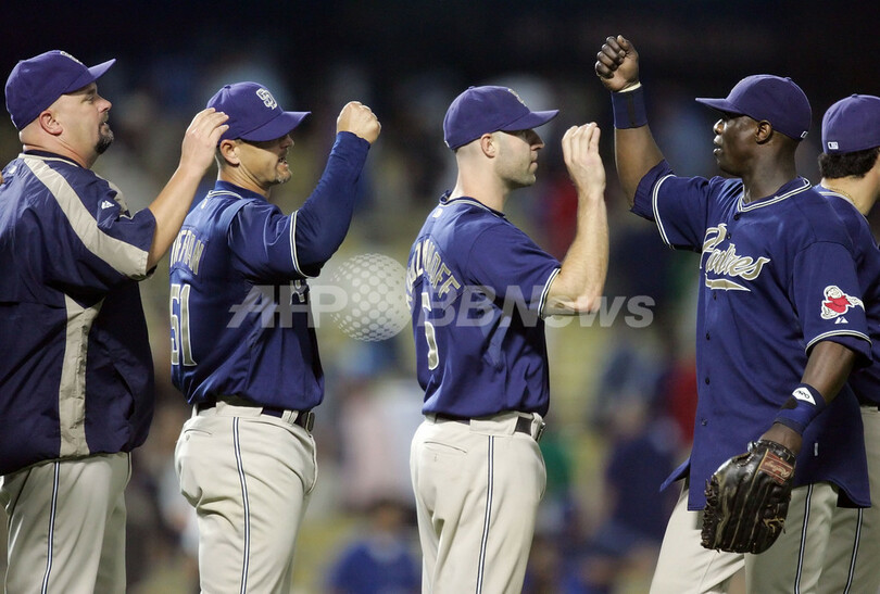 スポーツ 野球 パドレス ドジャースを降して4連勝を飾る 2007年7月1日 18:20 発信地:ロサンゼルス/米国 [ 北米 米国 ] このニュースをシェア ‹ › ❮ 2/7 ❯ 試合後にチームメイトとタッチを交わすパドレスのマイク・キャメロン(%%Mike Cameron%%、右)。(c)AFP/Getty Images Lisa Blumenfeld 画像作成中 ! 【7月1日 AFP】07MLB、ロサンゼルス・ドジャース(Los Angeles Dodgers)vsサンディエゴ・パドレス(San Diego Padres)。試合は12回の延長の末3-1でパドレスが勝利し、4連勝を飾った。(c)AFP/Getty Images 野球 一覧へ> メディア・報道関係・法人の方向け 写真・動画 購入のお問合せ>