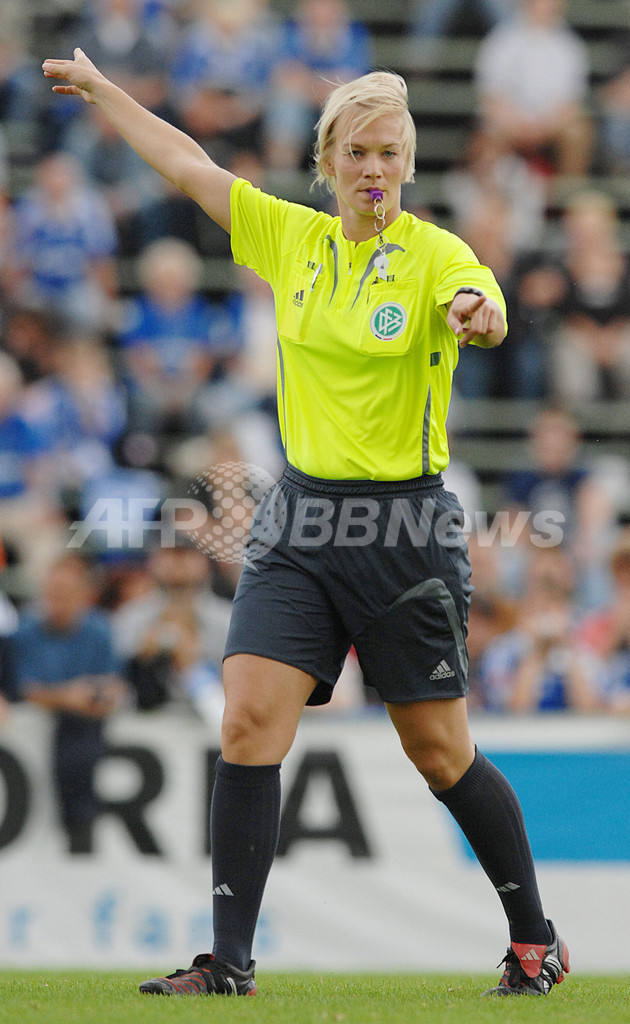 【7月2日 AFP】サッカー、ドイツ・ブンデスリーガ1部のシャルケ04(Schalke04)の練習試合で、ドイツサッカー連盟(DFB)に雇用された初の女性審判員のビビアナ・シュタインハウス(Bibiana Steinhaus)さんが主審を務めた。シュタインハウスさんは07-08シーズン、ブンデスリーガ2部で審判を務めることが決まっている。(c)AFP