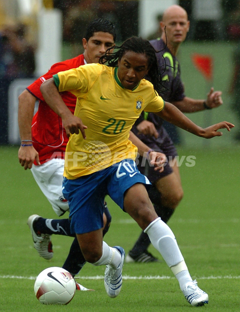 【7月2日 AFP】サッカー、コパ・アメリカ2007(Copa America 2007)・グループB、ブラジルvsチリ。試合はブラジルがレアル・マドリード(Real Madrid)のロビーニョ(Robinho)がハットトリックを達成し3-0でチリを下し、通算成績を1勝1敗とした。ブラジルは、前半36分にロビーニョ(Robinho)がPKを決めて先制し、前世界王者として後半は緊迫したが試合残り6分で、再びロビーニョが2ゴール(後半39分、42分)をもぎ取った。(c)AFP