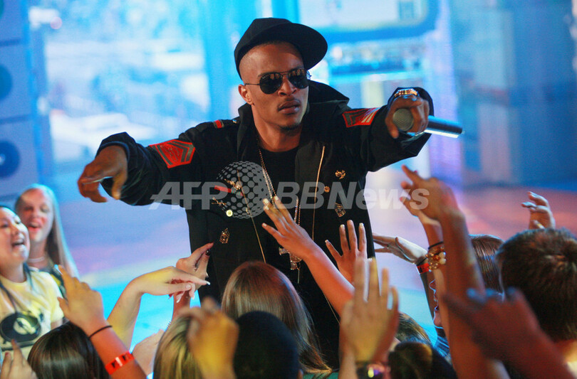2007年7月2日、MTVの音楽情報番組「Total Request Live」に出演しパフォーマンスを披露するラッパーのT.I.。(c)AFP/Getty Images Evan Agostini