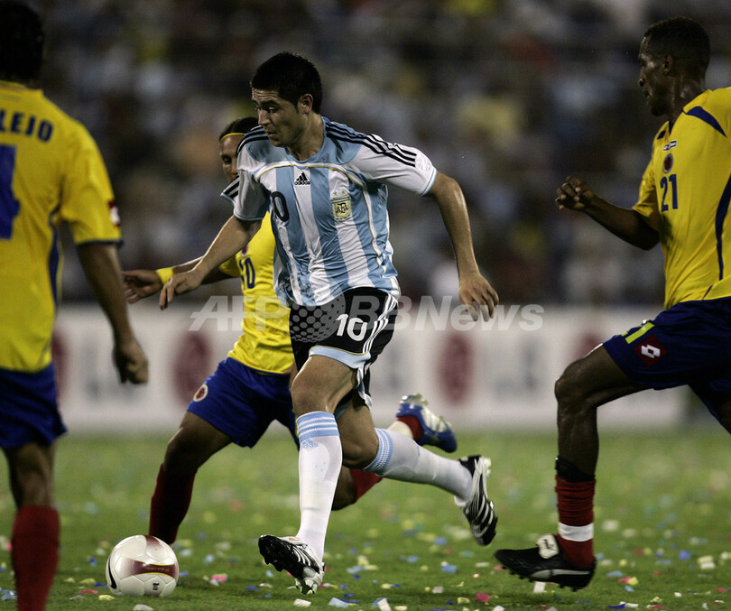 アルゼンチンは、前半10分にコロンビアのエディソン・ペレア(Edixon Perea)に先制ゴールを奪われるものの、その10分後の前半20分にエルナン・クレスポ(Hernan Crespo)が、元サッカー・アルゼンチン代表のディエゴ・マラドーナ(Diego Maradona)氏が保持する代表通算ゴール数を更新する通算35得点目のゴールを挙げて同点に追いつくと、ファン・ロマン・リケルメ(Juan Roman Riquelme)が2得点(前半33分、同45分)を決めて前半を終了した。