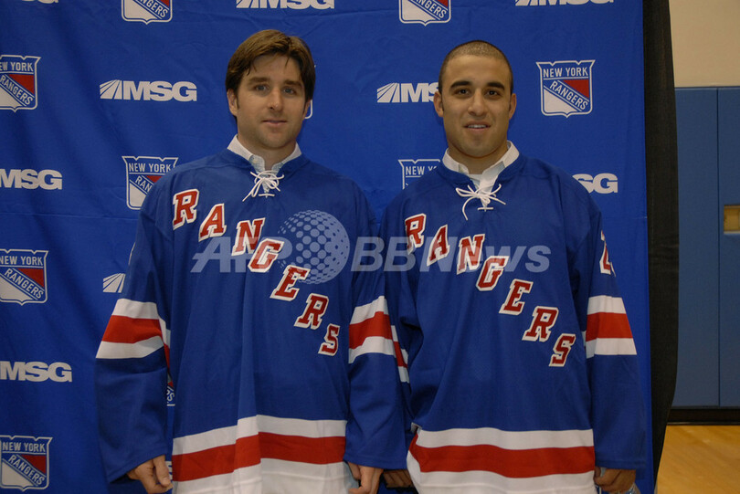 【7月3日 AFP】NHL、ニューヨーク・レンジャーズ(New York Rangers)は2日、1日付けでニュージャージー・デビルズ(New Jersey Devils)からフリーエージェント(FA)となっていたスコット・ゴメス(Scott Gomez)とバッファロー・セイバーズ(Buffalo Sabres)からFAとなっていたクリス・ドゥルーリー(Chris Drury)を獲得し、入団会見を行った。(c)AFP/Getty Images