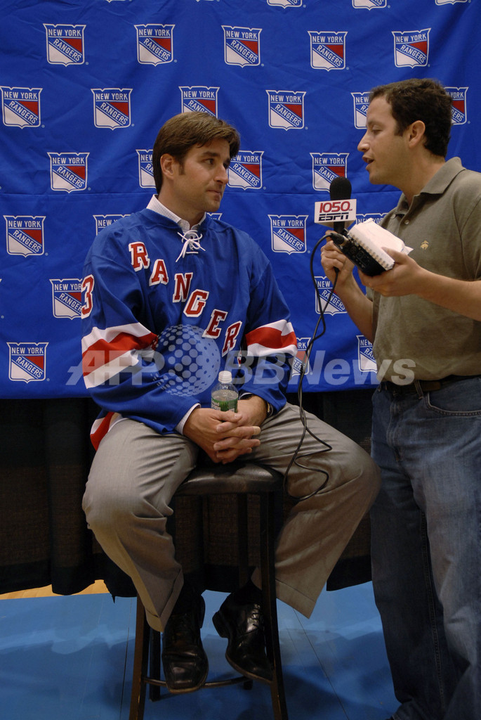 【7月3日 AFP】NHL、ニューヨーク・レンジャーズ(New York Rangers)は2日、1日付けでニュージャージー・デビルズ(New Jersey Devils)からフリーエージェント(FA)となっていたスコット・ゴメス(Scott Gomez)とバッファロー・セイバーズ(Buffalo Sabres)からFAとなっていたクリス・ドゥルーリー(Chris Drury)を獲得し、入団会見を行った。(c)AFP/Getty Images
