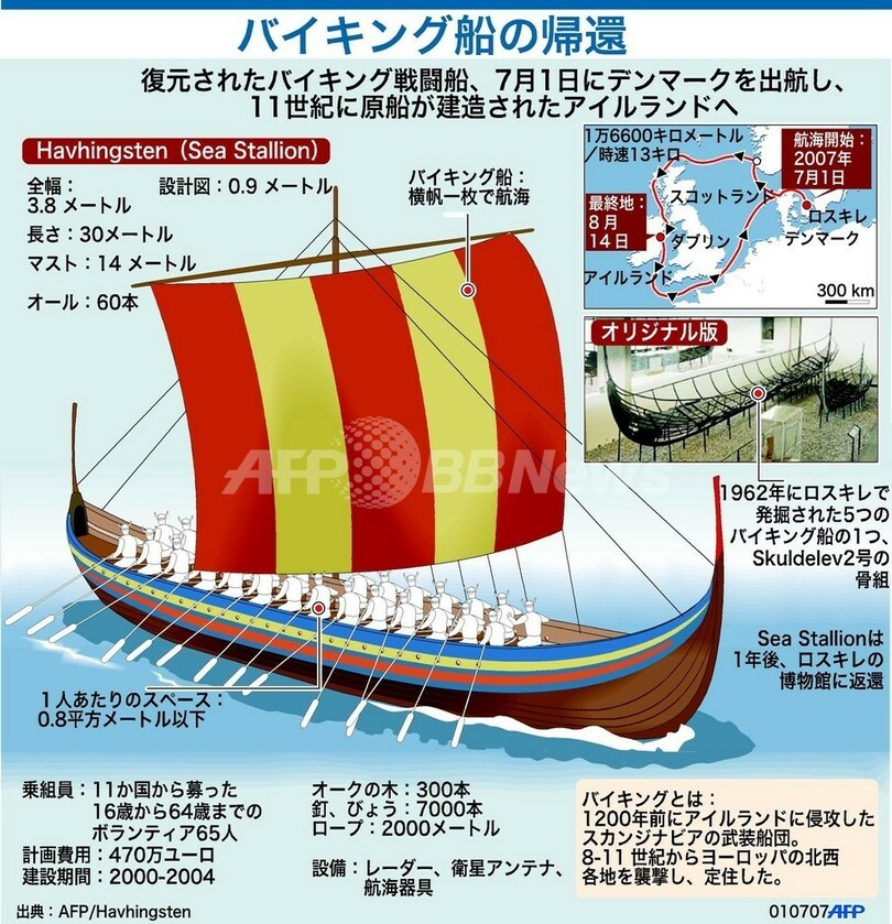 ニュース ライフ 図解 復元された11世紀のバイキング船、ダブリンに向け出航 2007年7月3日 18:38 発信地:ダブリン/アイルランド [ ヨーロッパ アイルランド ] このニュースをシェア (c)AFP 【7月3日 AFP】図は、11世紀のバイキング戦闘船を復元した船。(c)AFP<ニュース解説画像一覧へ> ライフ 一覧へ> メディア・報道関係・法人の方向け 写真・動画 購入のお問合せ>