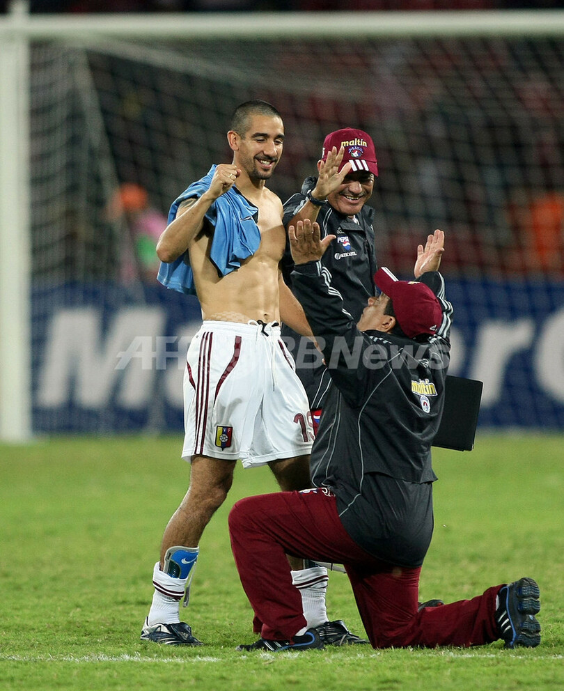スポーツ サッカー ウルグアイ ベネズエラと引き分けるも決勝T進出 2007年7月4日 16:31 発信地:メリダ/ベネズエラ [ 中南米 ベネズエラ ] このニュースをシェア ‹ › ❮ 11/11 ❯ 決勝トーナメント進出を喜ぶベネズエラの選手たち。(c)AFP/JUAN BARRETO 画像作成中 ! 【7月4日 AFP】サッカー、コパ・アメリカ2007(Copa America 2007)・グループA、ベネズエラvsウルグアイ。試合は0-0のスコアレスドローに終わった。この結果ベネズエラはグループ首位通過が、またウルグアイは各グループ3位のチームの中で上位2チームに入ることが確定し決勝トーナメント進出を決めた。(c)AFP サッカー 一覧へ> メディア・報道関係・法人の方向け 写真・動画 購入のお問合せ>