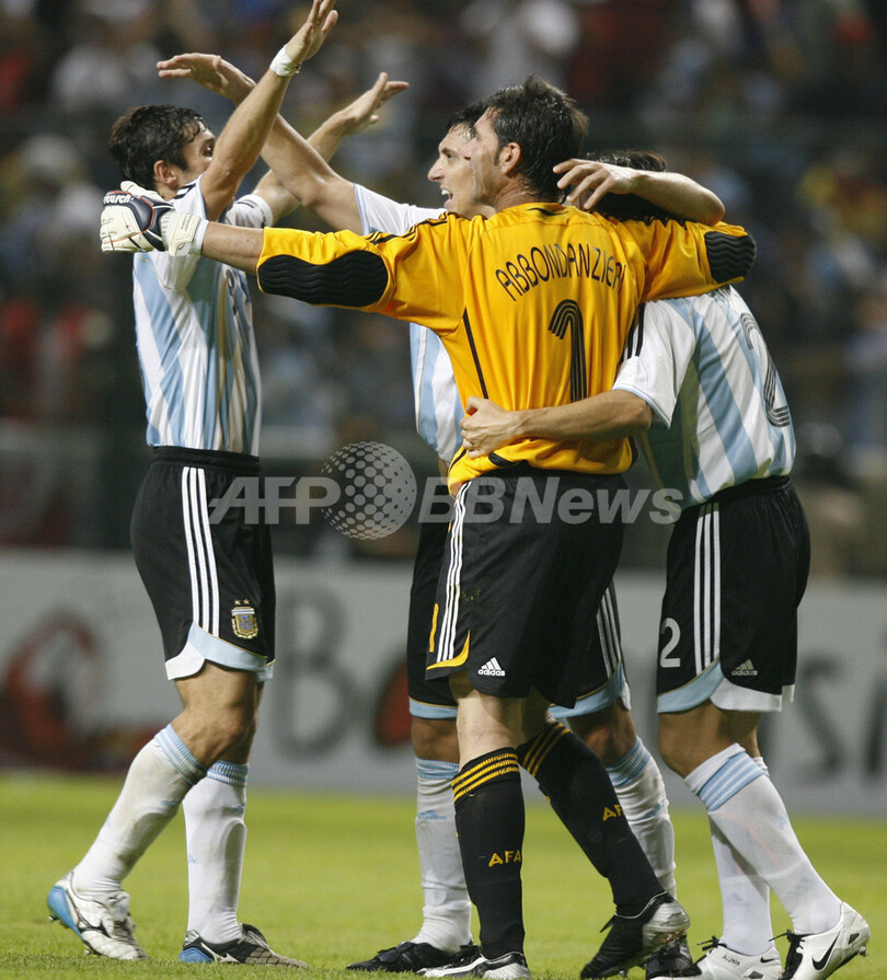 スポーツ サッカー アルゼンチン 3連勝でグループ首位通過 2007年7月6日 17:10 発信地:バルキシメト/ベネズエラ [ 中南米 ベネズエラ ] このニュースをシェア ‹ › ❮ 14/16 ❯ 勝利を祝うアルゼンチンの選手たち。(c)AFP/Rodrigo ARANGUA 画像作成中 ! 【7月6日 AFP】サッカー、コパ・アメリカ2007(Copa America 2007)・グループC、アルゼンチンvsパラグアイ。試合はアルゼンチンが1-0で勝利し、3連勝でグループ首位通過を決めた。(c)AFP サッカー 一覧へ> メディア・報道関係・法人の方向け 写真・動画 購入のお問合せ>
