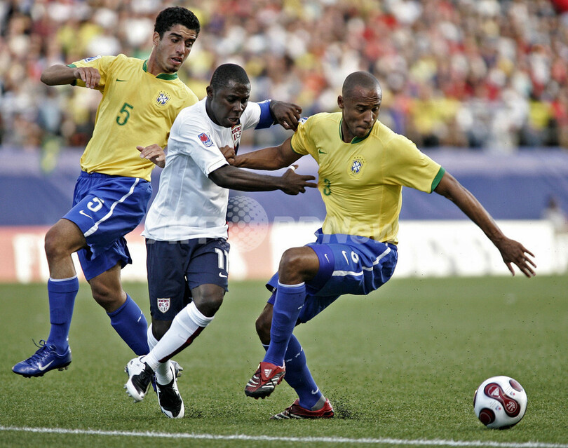 スポーツ サッカー 米国 ブラジルを降しグループ首位で決勝トーナメント進出 2007年7月7日 14:04 発信地:オタワ/カナダ [ 北米 カナダ ] このニュースをシェア ‹ › ❮ 8/8 ❯ ブラジル守備陣に囲まれる米国のフレディ・アドゥ(%%Freddy Adu%%)。(c)AFP/GEOFF ROBINS 画像作成中 ! 【7月7日 AFP】07サッカーU-20W杯・グループD、米国vsブラジル。試合は米国が2-1で勝利を収め、通算成績を2勝1分けとしてグループ首位で決勝トーナメント進出を決めた。(c)AFP サッカー 一覧へ> メディア・報道関係・法人の方向け 写真・動画 購入のお問合せ>