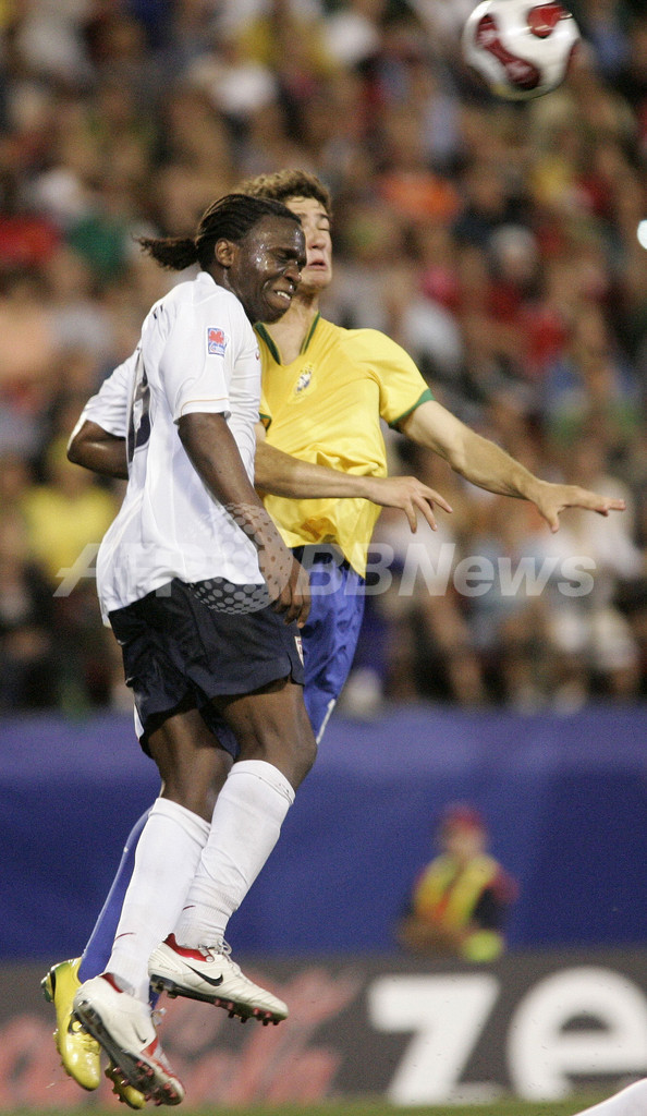スポーツ サッカー 米国 ブラジルを降しグループ首位で決勝トーナメント進出 2007年7月7日 14:04 発信地:オタワ/カナダ [ 北米 カナダ ] このニュースをシェア ‹ › ❮ 2/8 ❯ ブラジルのアレシャンドレ・パト(%%Alexandre Pato%%)とハイボールを競る米国のオフォリ・サーコディー(%%Ofori Sarkodie%%)。(c)AFP/GEOFF ROBINS 画像作成中 ! 【7月7日 AFP】07サッカーU-20W杯・グループD、米国vsブラジル。試合は米国が2-1で勝利を収め、通算成績を2勝1分けとしてグループ首位で決勝トーナメント進出を決めた。(c)AFP サッカー 一覧へ> メディア・報道関係・法人の方向け 写真・動画 購入のお問合せ>