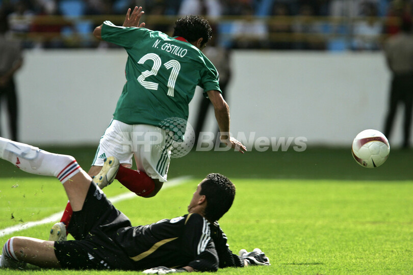 【7月9日 AFP】サッカー、コパ・アメリカ2007(Copa America 2007)・準々決勝、メキシコvsパラグアイ。メキシコはネリ・カスティージョ(Nery Castillo)が2得点(前半5分、同39分)を奪う活躍などで6点の大量ゴールを挙げて、10人となったパラグアイを降し準決勝進出を決めた。パラグアイは前半2分にGKのアルド・ボバディージャ(Aldo Bobadilla)がペナルティエリア内でカスティージョを倒し退場処分となり、準決勝進出への望みが断たれた。(c)AFP