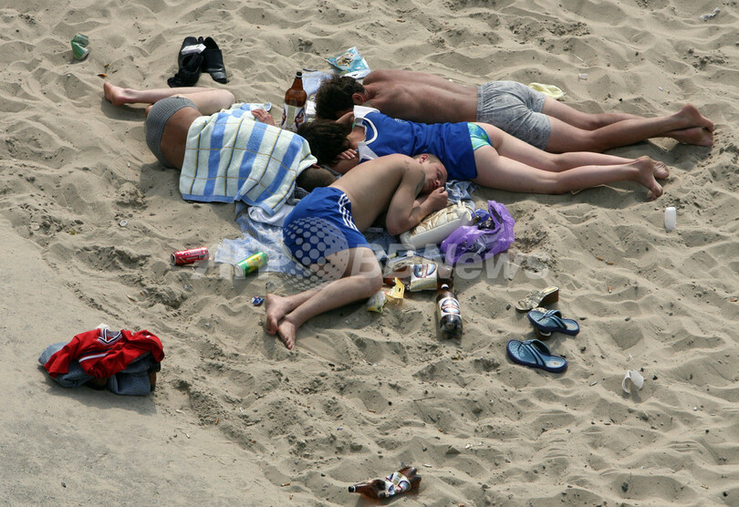 【7月9日 AFP】ウクライナの首都キエフ(Kiev)に近いハイドロパーク・ビーチ(Hydropark beach)には、毎年夏になると「短い夏のひととき」を求めてキエフ市民が押し寄せる。だが、川はひどく汚れている。砂地の河岸に優雅に寝そべるある年配の女性は、「河岸で太陽の光を浴びるのは健康にいいのよ」と言った後、顔をしかめて付け加えた。「水着に糞尿の臭いがつくときもあるけど」