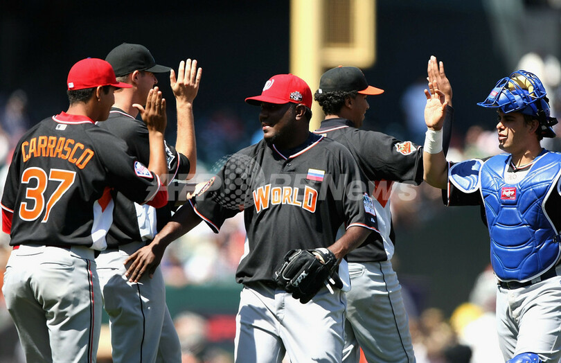 スポーツ 野球 オールスターフューチャーズゲームは世界選抜が勝利 2007年7月9日 14:57 発信地:サンフランシスコ/米国 [ 北米 米国 ] このニュースをシェア ‹ › ❮ 1/20 ❯ 勝利を収めチームメイトと喜びを分かち合う世界選抜のエミリアーノ・フルート(%%Emiliano Fruto%%、中央)。(c)AFP/Getty Images Jed Jacobsohn 画像作成中 ! 【7月9日 AFP】第78回MLB・オールスターゲーム(78th All-Star game)の前哨戦、オールスター・フューチャーズゲーム(All-Star Futures Game)、世界選抜vs米国選抜。試合は世界選抜が7-2で米国選抜を降した。(c)AFP/Getty Images 野球 一覧へ> メディア・報道関係・法人の方向け 写真・動画 購入のお問合せ>