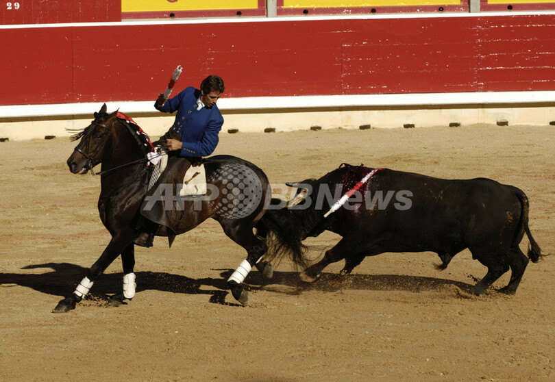 ニュース ライフ スペイン各地で牛追い祭り 2007年7月9日 16:53 発信地:パンプローナ/スペイン [ ヨーロッパ スペイン ] このニュースをシェア ‹ › ❮ 3/16 ❯ 2007年7月6日、パンプロナ(Pamplona)で、牛追い祭り(サン・フェルミン祭、San Fermin)の初日に開催された闘牛。(c)AFP/A. Arrizurieta 画像作成中 ! 【7月9日 AFP】スペインでは伝統的な牛追い祭り(サン・フェルミン祭、San Fermin)が各地で開催されている。北東部の町パンプロナ(Pamplona)では8日、闘牛が行われた。また地中海の港町デニア(Denia)では、牛追い祭りの参加者が牛と一緒に海に飛び込んだ。(c)AFP ライフ 一覧へ> メディア・報道関係・法人の方向け 写真・動画 購入のお問合せ>