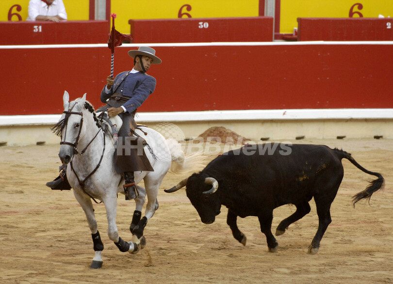 ニュース ライフ スペイン各地で牛追い祭り 2007年7月9日 16:53 発信地:パンプローナ/スペイン [ ヨーロッパ スペイン ] このニュースをシェア ‹ › ❮ 2/16 ❯ 2007年7月6日、パンプロナ(Pamplona)で、牛追い祭り(サン・フェルミン祭、San Fermin)の初日に開催された闘牛。(c)AFP/A. Arrizurieta 画像作成中 ! 【7月9日 AFP】スペインでは伝統的な牛追い祭り(サン・フェルミン祭、San Fermin)が各地で開催されている。北東部の町パンプロナ(Pamplona)では8日、闘牛が行われた。また地中海の港町デニア(Denia)では、牛追い祭りの参加者が牛と一緒に海に飛び込んだ。(c)AFP ライフ 一覧へ> メディア・報道関係・法人の方向け 写真・動画 購入のお問合せ>