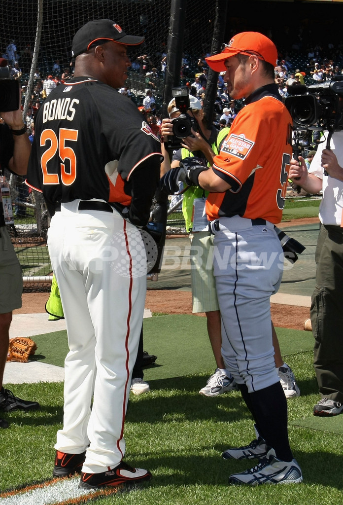スポーツ 野球 イチロー オールスターゲーム前日練習に登場 2007年7月10日 16:27 発信地:サンフランシスコ/米国 [ 北米 米国 ] このニュースをシェア ‹ › ❮ 2/2 ❯ ナショナルリーグのサンフランシスコ・ジャイアンツに所属するバリー・ボンズ(%%Barry Bonds%%、左)と会話を交わすイチロー。(c)AFP/Getty Images Jed Jacobsohn 画像作成中 ! 【7月10日 AFP】第78回MLB・オールスターゲーム(78th All-Star game)の開幕を現地時間の10日に控え、アメリカンリーグのシアトル・マリナーズ(Seattle Mariners)に所属するイチロー(Ichiro)が、試合の行われるサンフランシスコ・ジャイアンツ(San Francisco Giants)の本拠地AT&Tパーク(AT&T Park)で前日練習に臨んだ。(c)AFP/Getty Images 野球 一覧へ> メディア・報道関係・法人の方向け 写真・動画 購入のお問合せ>