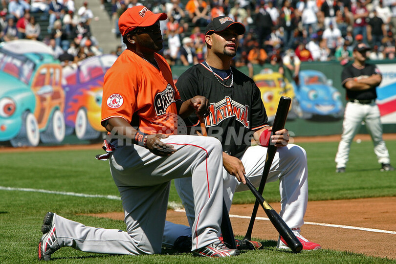 スポーツ 野球 オールスターゲームに出場する選手らが前日練習に臨む 2007年7月10日 16:56 発信地:サンフランシスコ/米国 [ 北米 米国 ] このニュースをシェア ‹ › ❮ 20/24 ❯ 会話を交わすアメリカンリーグのボストン・レッドソックス(%%Boston Red Sox%%)に所属するデビッド・オーティス(%%David Ortiz%%、左)とナショナルリーグのセントルイス・カージナルス(%%St. Louis Cardinals%%)に所属するアルバート・プホルス(%%Albert Pujols%%)。(c)AFP/Getty Images Jeff Gross 画像作成中 ! 【7月10日 AFP】第78回MLB・オールスターゲーム(78th All-Star game)の開幕を現地時間の10日に控え、両リーグの出場選手らが試合の行われるサンフランシスコ・ジャイアンツ(San Francisco Giants)の本拠地AT&Tパーク(AT&T Park)で前日練習に臨んだ。(c)AFP/Getty Images 野球 一覧へ> メディア・報道関係・法人の方向け 写真・動画 購入のお問合せ>